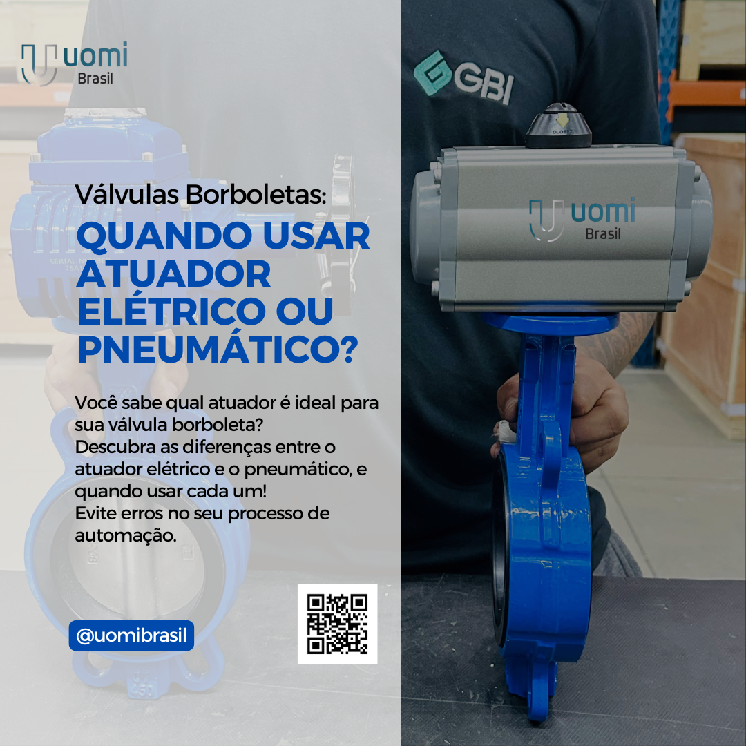 Para garantir o máximo desempenho em sistemas de automação de válvulas, é fundamental escolher corretamente o tipo de atuador que irá compor a sua válvula borboleta automatizada. A UOMI Brasil oferece uma linha completa de atuadores elétricos e pneumáticos, válvulas industriais e acessórios, com suporte técnico para seleção e dimensionamento dos componentes ideais para cada aplicação.